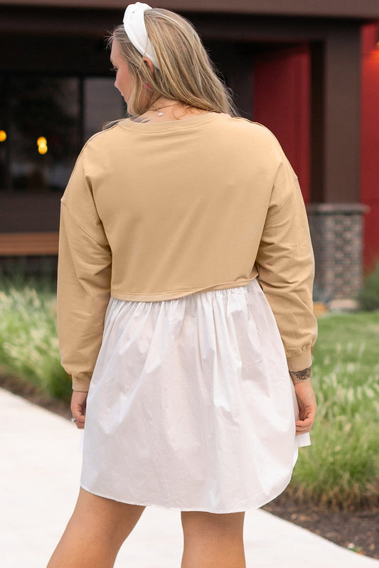 Apricot Color Block Patchwork Plus Size Mini Dress