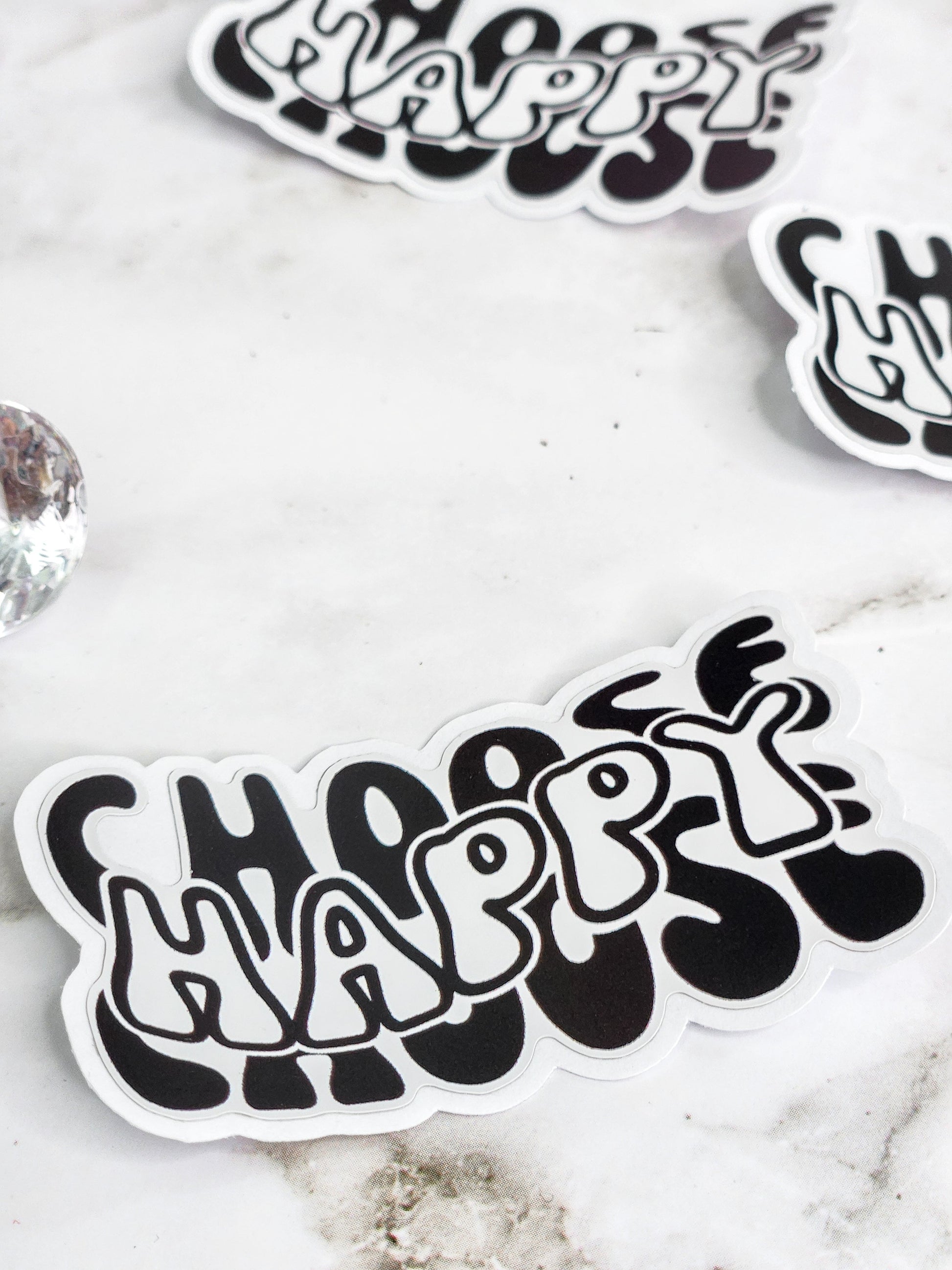 Choose Happy is a cute stickers that you can use in your planner, to decorate your notebooks, laptops, cellphones, tumblers and more! Die cut stickers are designed by me in my WV home studio and cut using my silhouette cutting system!
