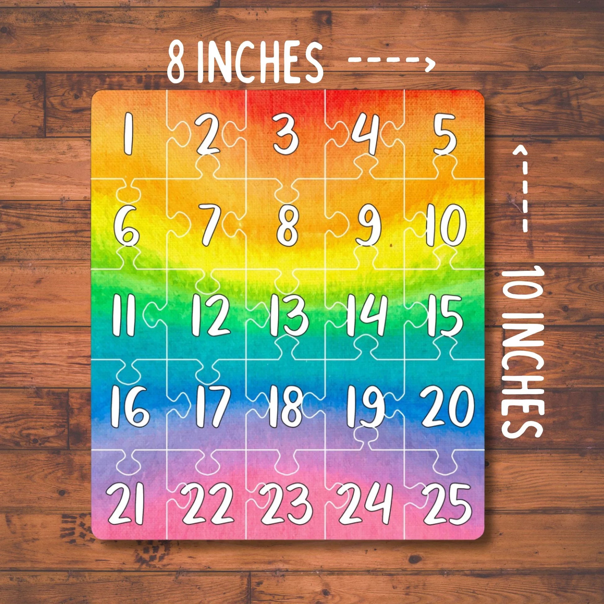 - One 8″ x 10″ double-sided puzzle with 25 pieces