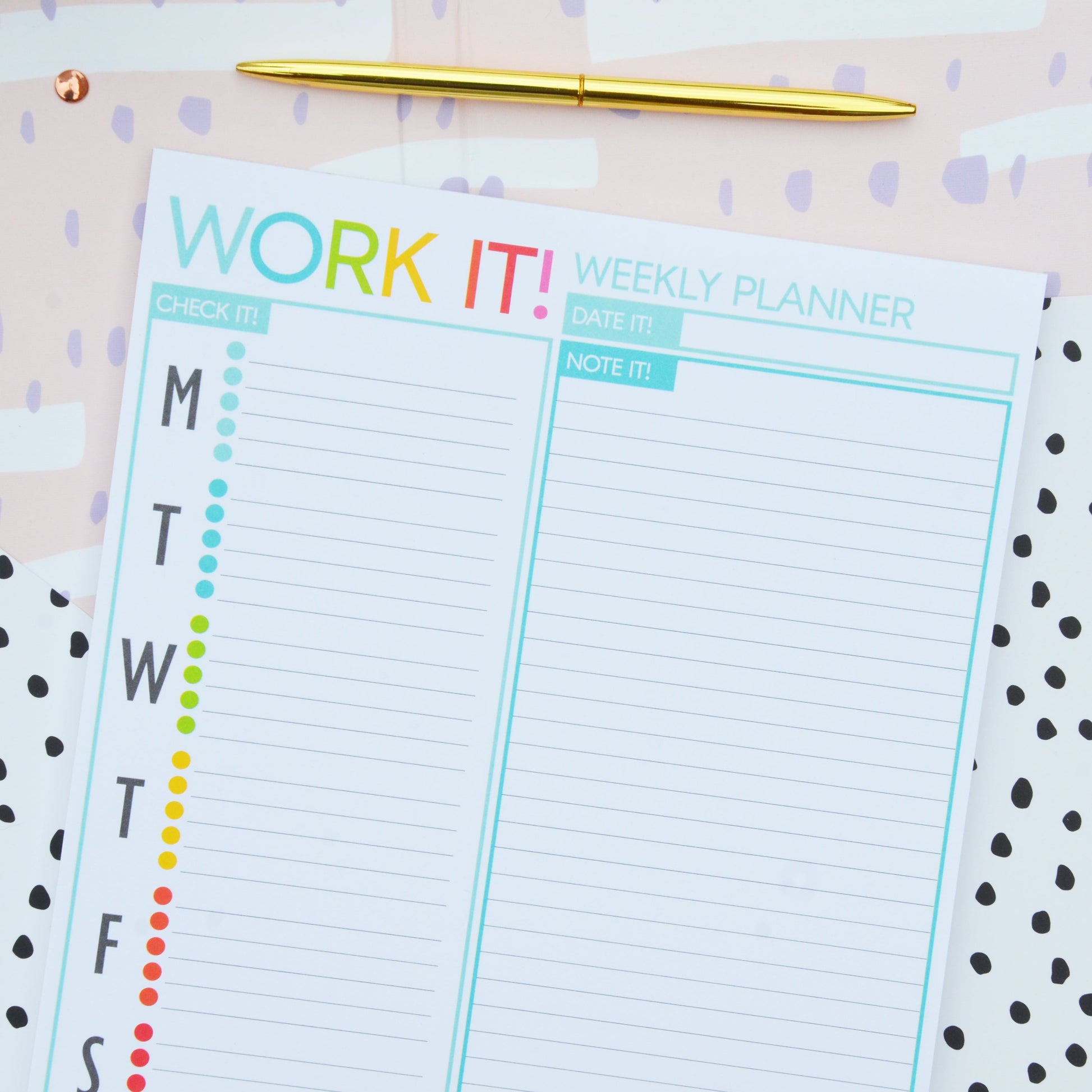 The BERTEAU & Co. Work It! Weekly Notepad is perfect for planning out your week and writing all the important things down!