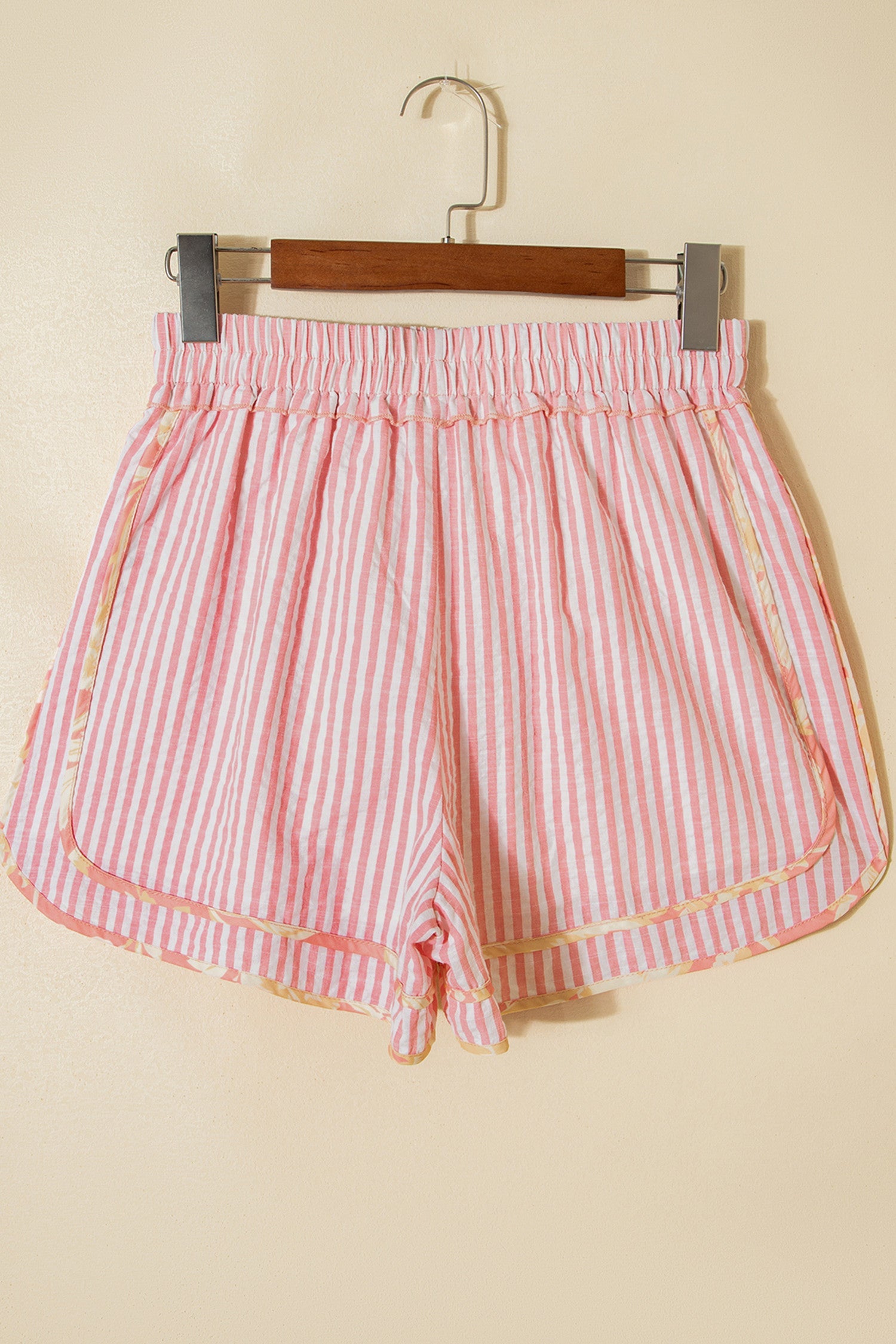 Embrace effortless summer style with these striped casual shorts featuring delicate floral trim that adds a feminine touch to your warm-weather wardrobe. The charming ribbon knot waist provides both visual appeal and adjustable comfort for the perfect fit. Crafted from lightweight fabric, these shorts deliver all-day wearability without sacrificing style, making them an ideal choice for relaxed outings and casual adventures.