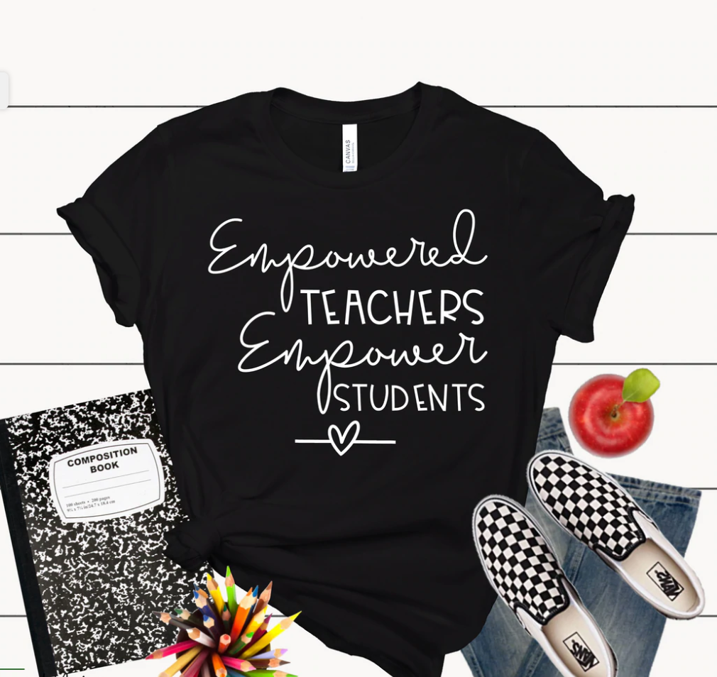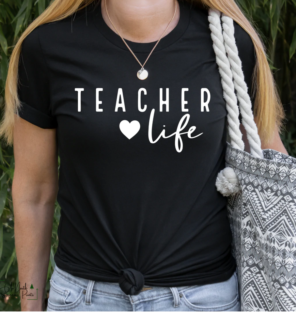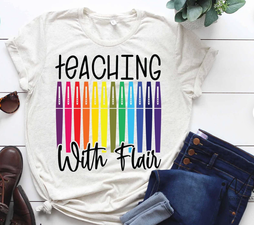 Teacher tee's screen print. Teaching with flair is sublimation.